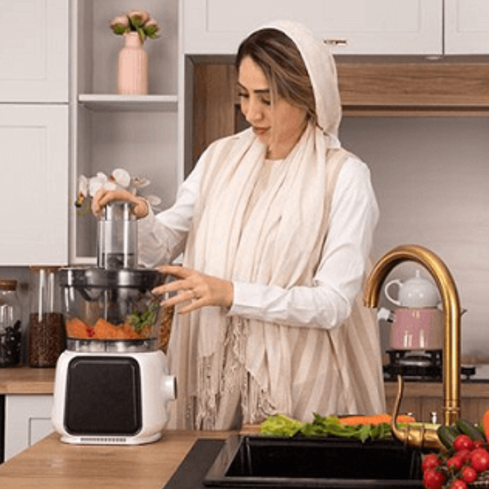 - با قابلیت خردکن مواد غذایی مانند سیبزمینی، هویج، پیاز، پنیر و سیب به صورت نگینی